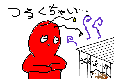 つるは昼間は暴れない大人しいトリだと思ってたんですけど、何故か今日は朝(つっても11時位)からドタバタ五月蝿いので何事かとつる小屋覗いてみたらご飯が底ついてました(いや、大半はつるが地面に撒き散らしてくれたんだけどね・・・)